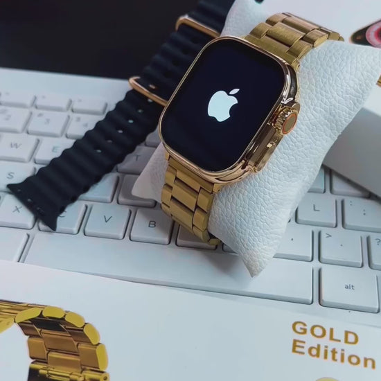Introducing the Apple Watch Ultra Golden Edition – the epitome of luxury and advanced technology combined into one sleek timepiece. With a stunning golden design, this high-quality Apple Watch clone offers a vibrant 2.05" Retina FHD display, Bluetooth calling, and seamless notifications. It comes with two stylish straps – a gold stainless steel bracelet and a comfortable black silicone strap, making it perfect for any occasion.