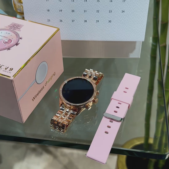Explore the Fossil Gen 9 Smartwatch with dual connectivity, diamond-studded metal belt, 1.3" HD touchscreen, and fitness tracking features. With heart rate monitoring, BT calling, music, and more. A perfect blend of luxury and technology. Ready to elevate your style today!