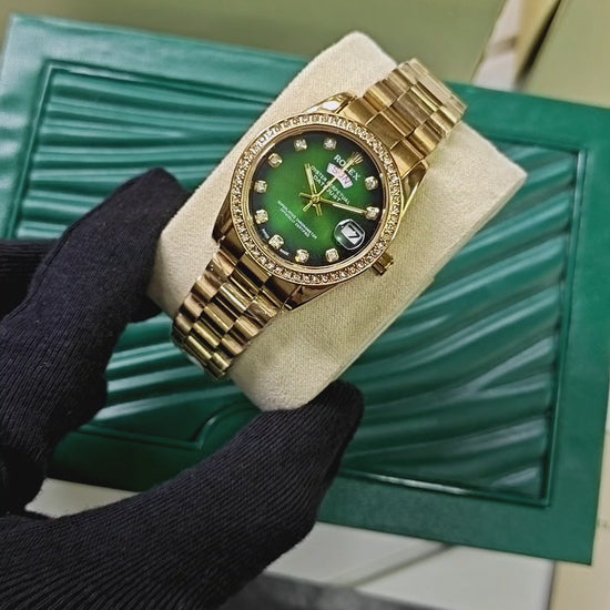 Rolex Day Date Oyster Perpetual 28mm Women's Watch – Premium Luxury with Green Diamond Dial